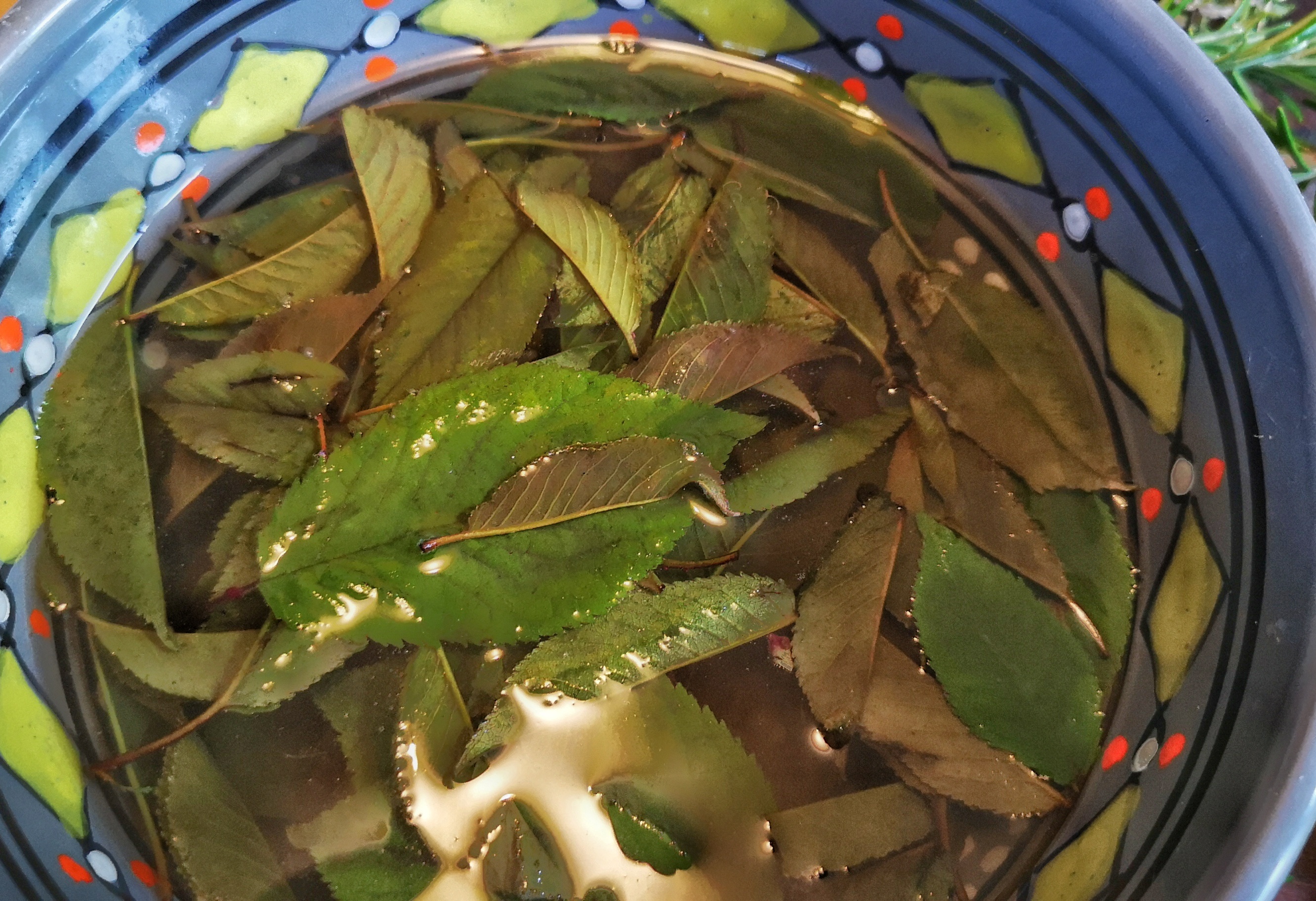 Die Kirschblüten sind von unserem Baum, eingelegt sind die derzeit in Zucker pur, in Zucker mit Ume Su bio, einer feinsäuerlichen, fruchtigen Würzsauce mit salziger Note sowie in Salz pur und mit Ume Su bio. Diese Würzsauce bildet sich bei der Milchsäure-Gärung von Bio Umeboshi-Aprikosen und kann wie Essig verwendet werden. Daneben sind junge Kirschblüten und erste Kirschblätter in Salzlake eingelegt, die hier die Sauce würzt. Der Rest muss noch reifen und soll auch zu Sakura, der getrockneten Kirschblüte verarbeitet werden. Bin gespannt, was da diesmal raus kommt.