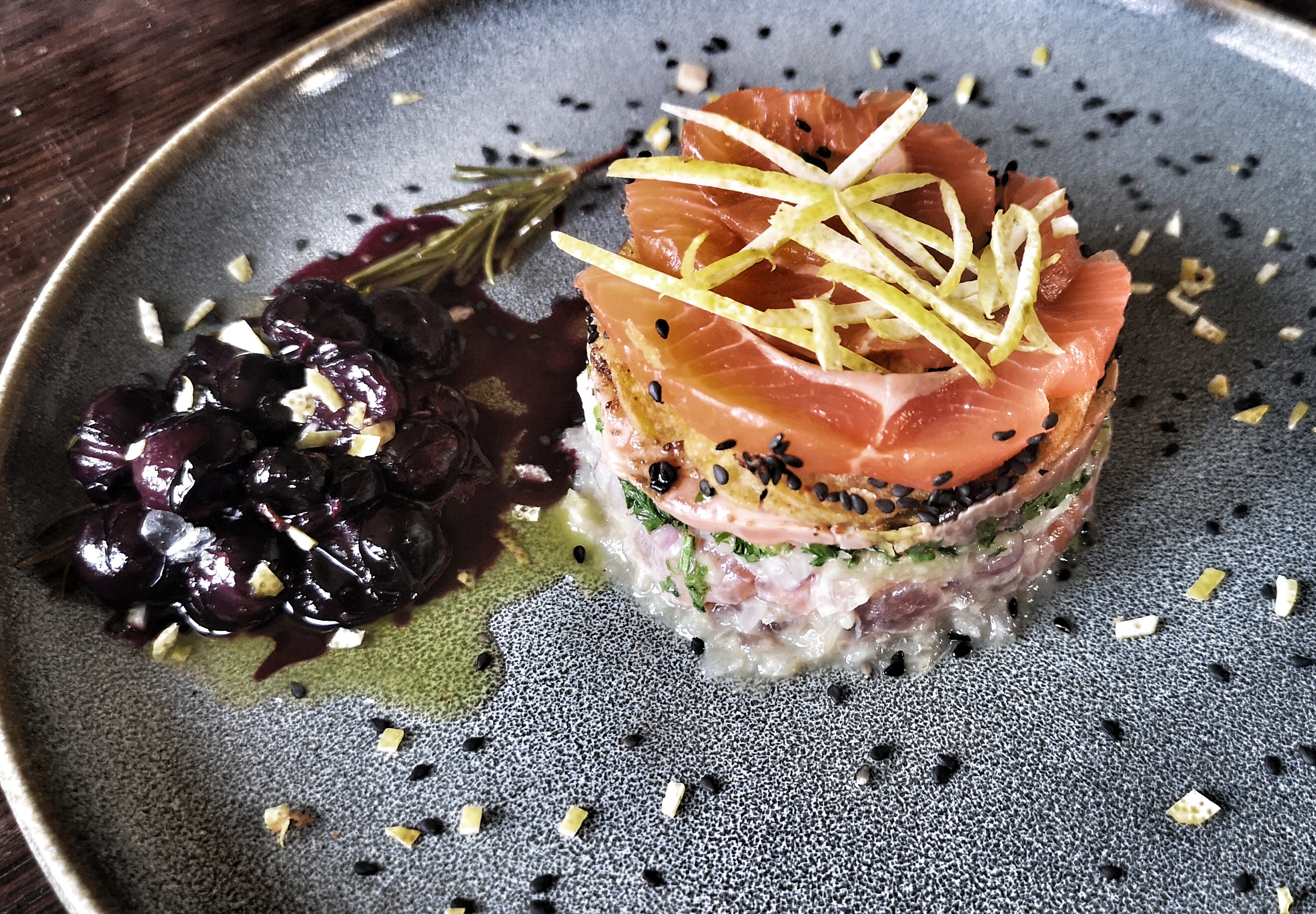 Ich habe die Trauben ersteinmal gewaschen und von den Stilen befreit. Dann mit reichlich Rosmarin und Olivenöl gebacken - 200 Grad rund 30 Minuten. Anschließend habe ich einige zu einem Thunfisch-Lachs-Tartar mit Zitronen-Würzsoße gegeben. Da aber störten mich die Traubenkerne.