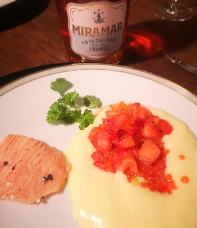 Zu Essen gab es zunächst mal Erdbeer-Forellenkaviar mit Schaum aus weißer Schokolade und ein Stück in Zitronensaft mit Kaffee gegarten Lachs. Natürlich eine Variation eines Flavour-Paring-Rezeptes von Heiko Antoniewicz. Das Buch habe ich von Lydia geschenkt bekommen und es hat meine Art zu kochen komplett verändert. Die Weine hat übrigens Marleen Sturm empfohlen.