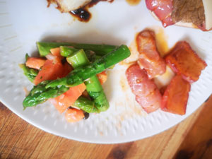 Als Salat gab es dazu grünen Spargel mit Papaya, frischem Ingwer, Schalotte und Kerbel.