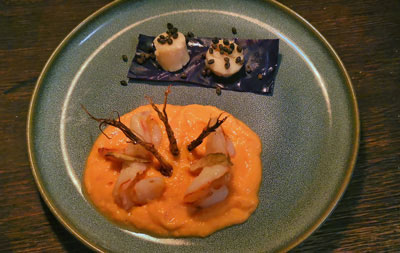 Springsteen zu Jakobsmuschel, Garnele und Entrecote