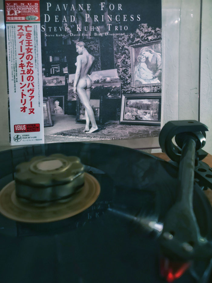 Der Burrata ist das Piano, bestimmt und doch auch geführt durch den Ruccola, das Schlagzeug, das sich nie in den Vordergrund drängt, aber doch in einigen Sequenzen den Ton angibt. Und auf Augenhöhe begleitet von den Tomaten, dem Bass, der ebenfalls immer wieder Akzente setzt, und ohne den die drei sich nicht unterhalten könnten. Der Akt auf dem „Pavane for a dead Princess“-Cover vom Steve Kuhn Trio sind bei mir die Chilifäden.
