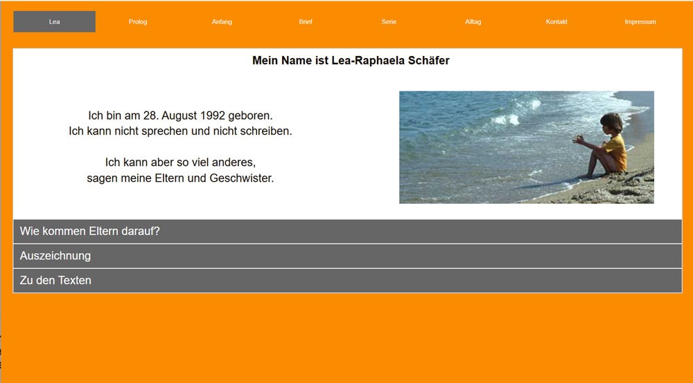 Mit der Internetseite für unsere Tochter Lea (https://www.lea-raphaela.de) haben wir im November 2002 den Hauptpreis in der Kategorie "Image - Dein Bild im Netz" bei den Netdays NRW gewonnen. Die Seite ist zusammen mit Lea entstanden, die seit ihrer Geburt eine gesistige und körperliche Behinderung hat.
